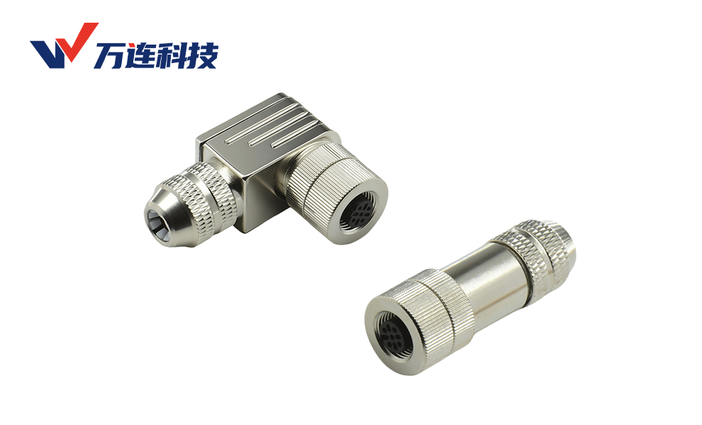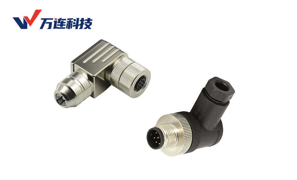 机器人的机身、关节、底座等部位,安装空间往往以毫米为单位——比如协作机器人的手腕模块、AGV的底盘驱动单元,内部间隙常小于8mm,直头连接器要么无法嵌入,要么会挤压周边线缆,增加磨损风险。而万连M12 90°弯角连接器,正是针对这一空间痛点的解决方案。