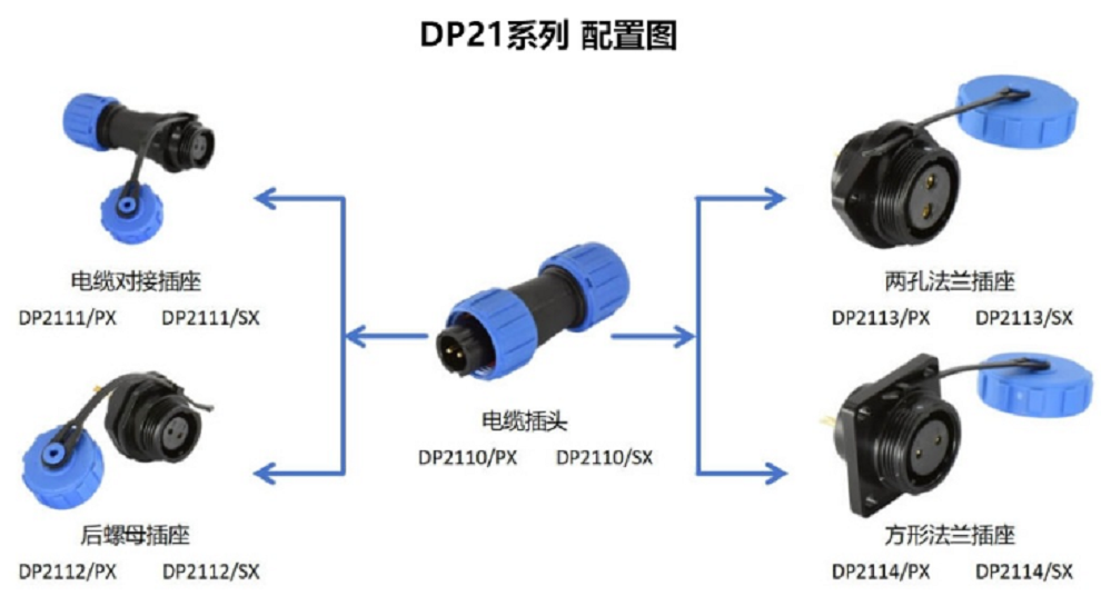 DP21系列以精密结构设计规避连接失效风险,核心优势集中在密封、导电与锁紧三大维度。