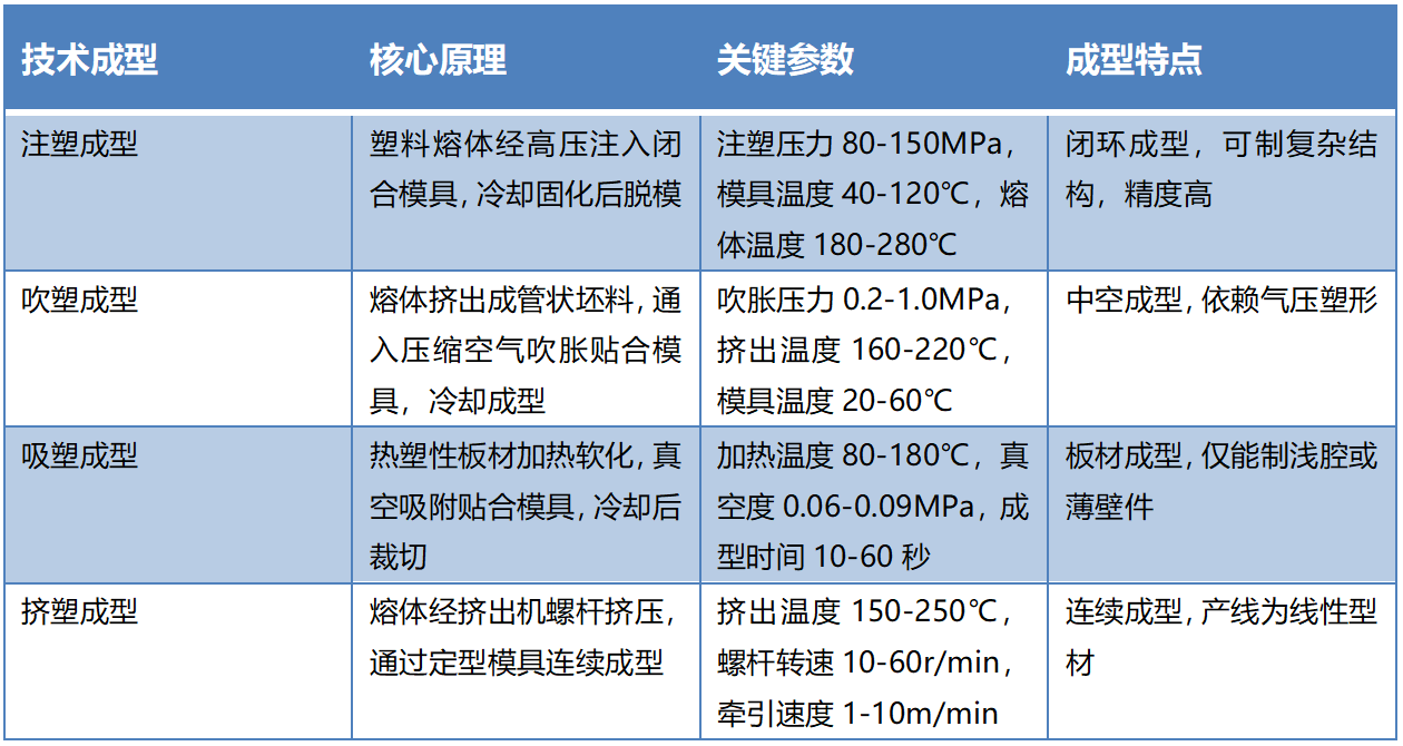 塑料成型技术是工业产品制造的核心工艺,注塑、吹塑、吸塑、挤塑因原理、参数及适用场景的差异,分别对应不同产品需求。以下结合工业级应用标准,从核心维度解析四大技术的关键区别: