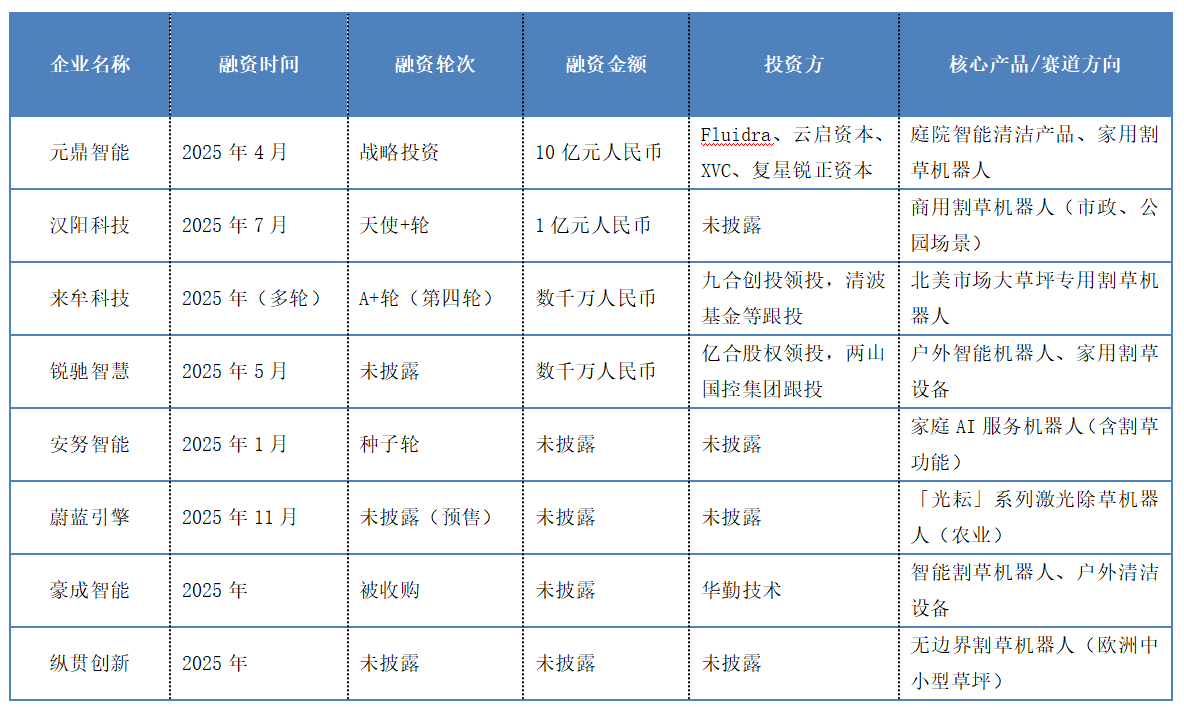 2025年国内割草机器人赛道融资企业梳理(截至12月)
