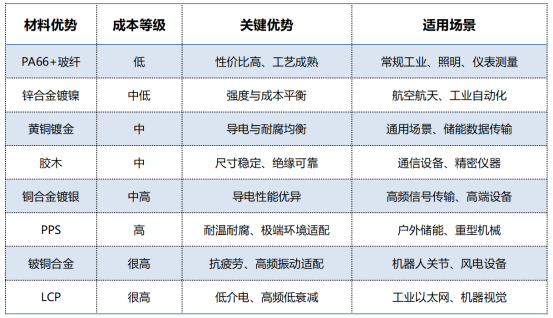 行业动态方面,2026年新能源储能与户外工业场景需求激增,PPS材料因耐温耐腐特性,市场渗透率年增18%;同时环保趋势下,RoHS认证材料成为标配,含铅、镉的传统合金逐渐被无铅镀金、无卤阻燃PA66替代,虽使成本微涨5%~8%,但合规性与可靠性显著提升。