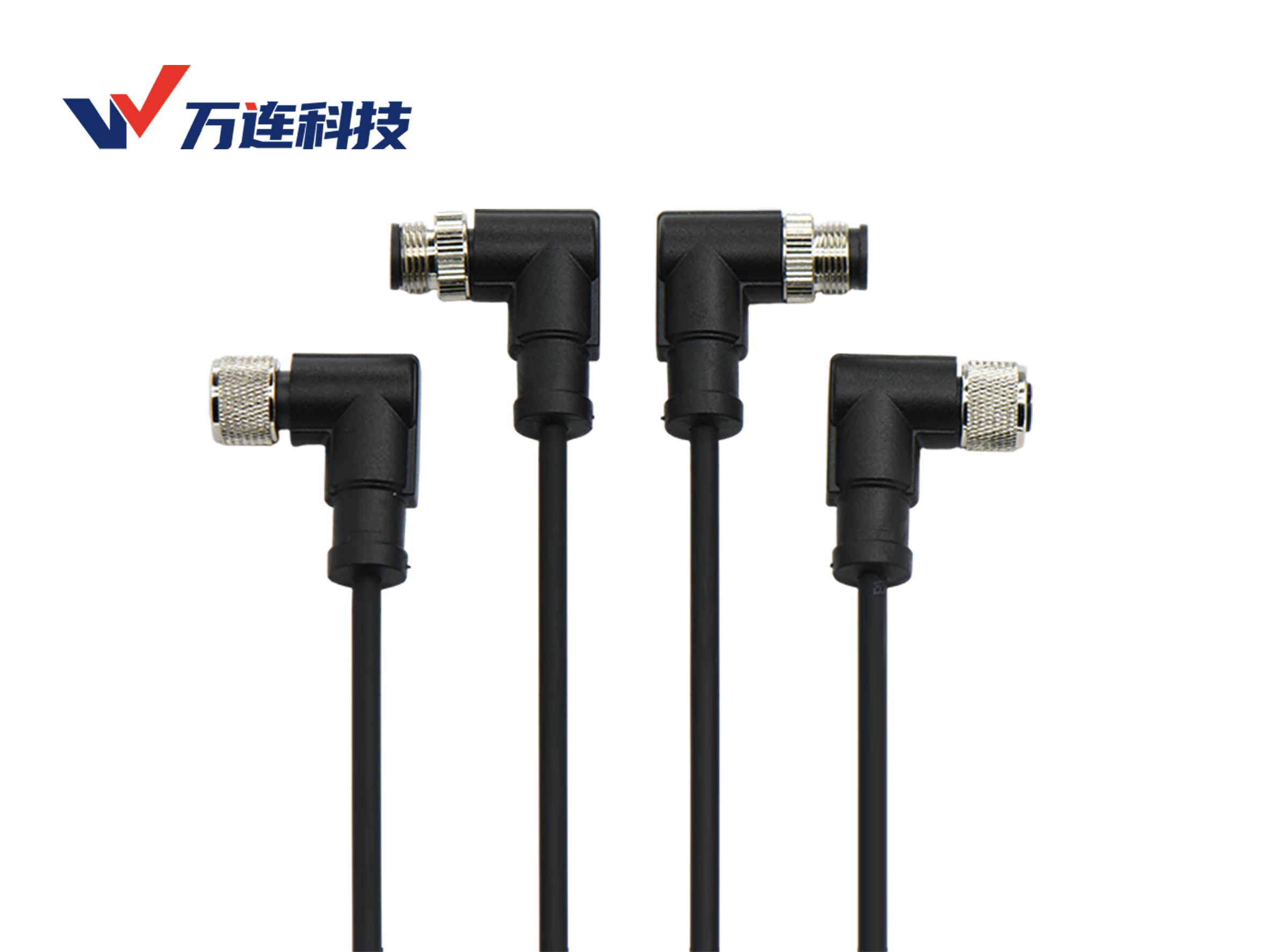 协作机器人、微型机械臂的夹爪、吸盘等执行器,空间间隙≤8mm,万连科技M12紧凑型线束(直径4.5mm)可轻松穿过,为夹爪供电(24V/0.5A)与信号传输,某3C工厂应用后,夹爪运动干涉率从25%降至1.5%,生产节拍提升12%。