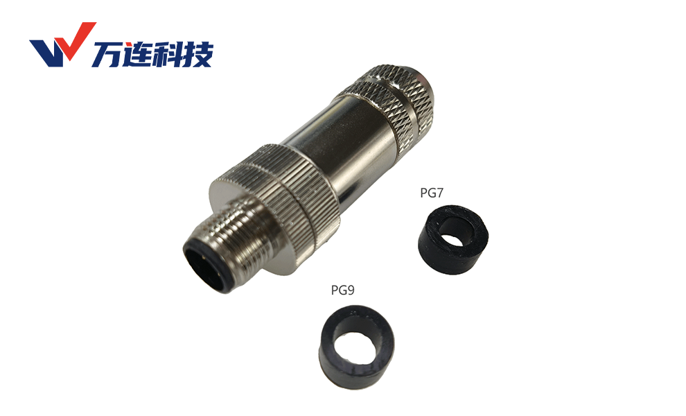 协作机器人关节需减轻末端重量。万连M8/M12微型连接器采用玻纤增强PA66注塑,密度仅1.3g/cm³,较锌合金外壳减重60%,同时通过15g加速度振动测试,适配机器人高频运动。