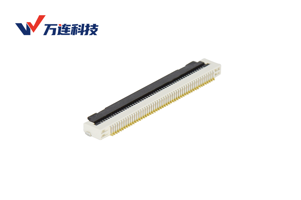 集成化设计减少组装环节。FFC与连接器一体化成型(FPC-to-board)技术通过LIM(液态注塑)工艺将线束与连接器壳体融合,减少人工焊接环节,提高良品率与终端产品稳定性。万连科技的FFC连接器采用旋转式锁定机构,在确保50N以上保持力的同时,实现单手操作的便捷性。