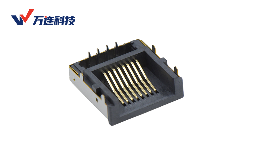 RJ45连接器在不同场景中的关键作用取决于其“工业适配”的程度。万连科技通过标准化RJ45母座系列与定制化工业RJ45方案的双轨布局,为交换机、工业控制器、机器人、通信基站等场景提供从百兆到万兆的可靠以太网连接,在保留RJ45标准接口的兼容性与低成本优势的同时,通过金属屏蔽、环境密封与工艺优化赋予了其工业级的耐用性与信号完整性保障。